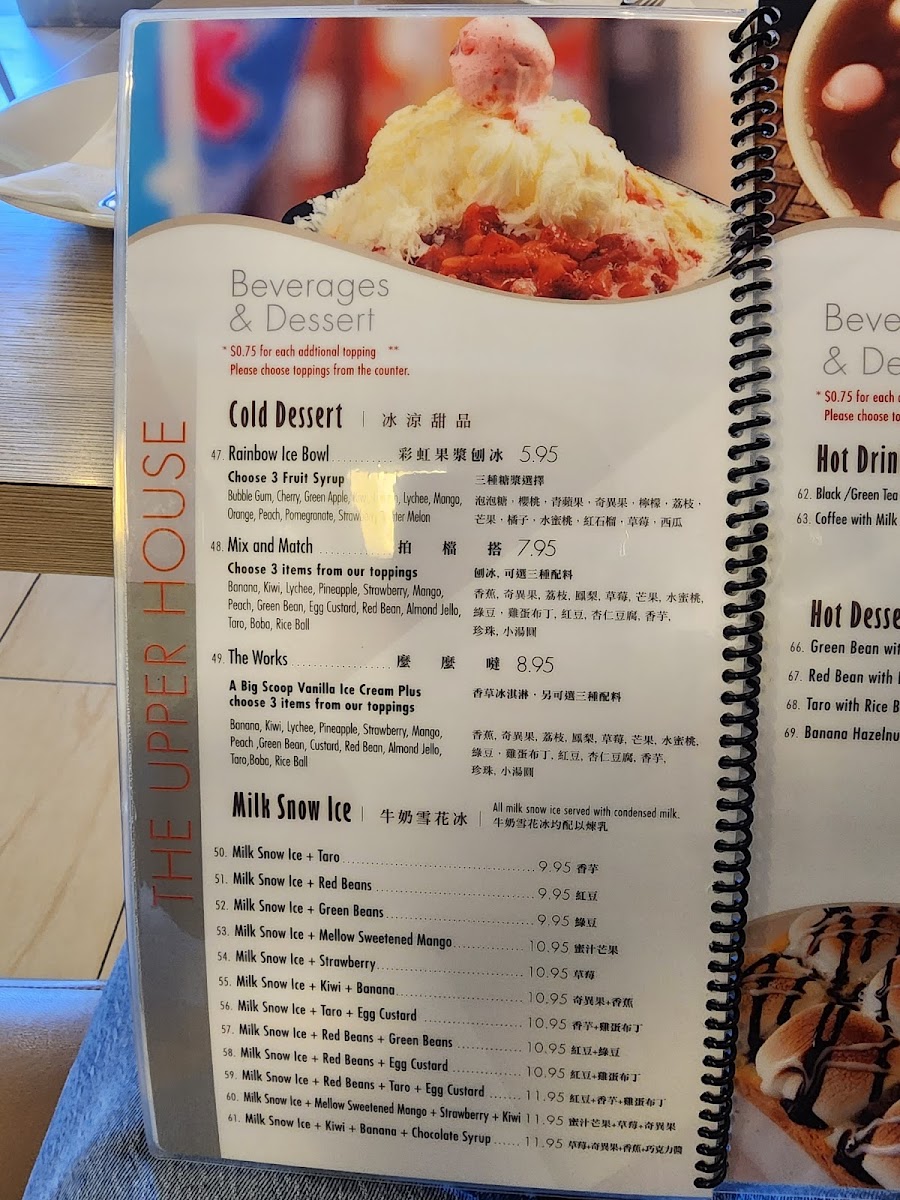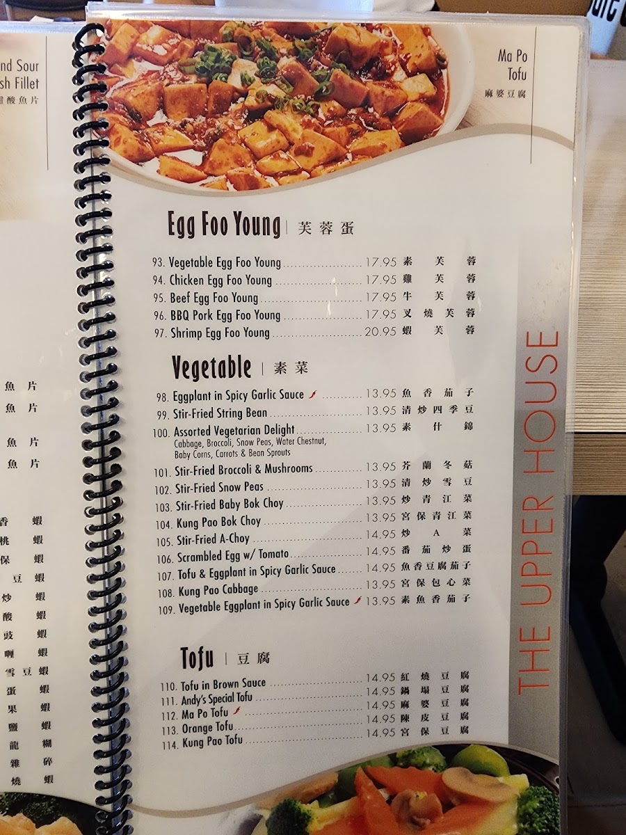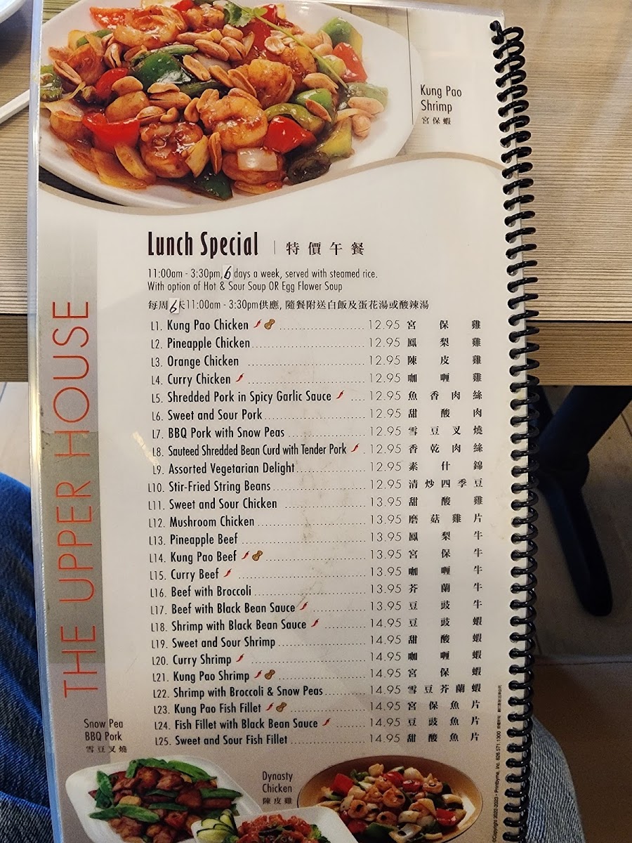 The Upper House offers a straightforward yet inviting menu centered on classic Chinese dishes crafted for everyday dining. The selection leans toward comforting, familiar flavors served in generous portions, making it easy to enjoy a relaxed meal any time of day.
